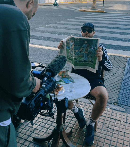 Natxo filming in Buenos Aires immediately after Argentina won the 2022 World Cup