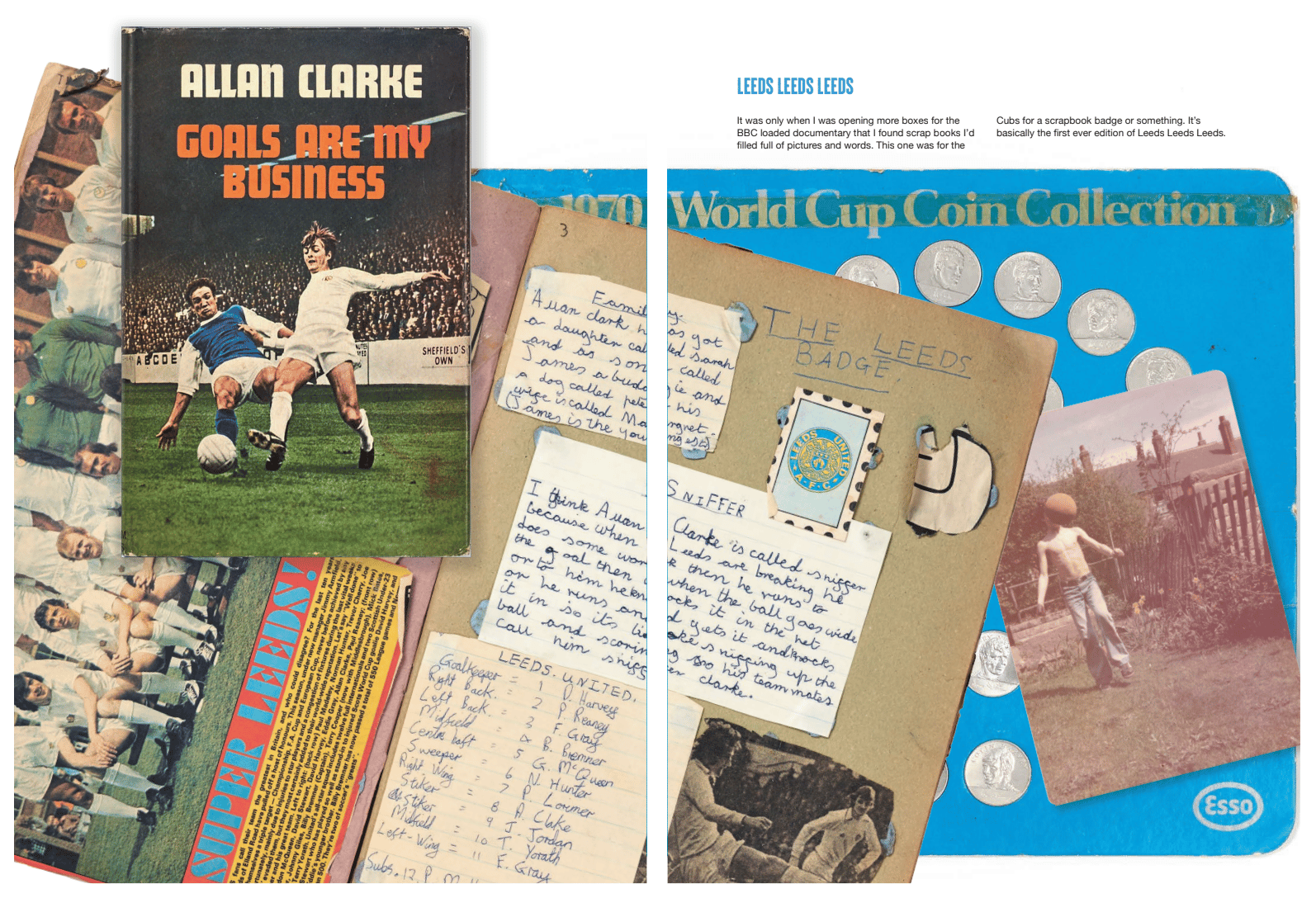 I was born in West London because my dad was working there and then after a couple of years we went back to Leeds and lived in a place called Collingham, where the footballers live and near where they train. So my immediate opposite neighbour was the Leeds and England striker Allan Clarke. My mum was friends with his wife and I was in and out of his house. I remember seeing him unpacking his suitcase coming back from the 1970 World Cup and sitting in his living room with his actual international caps out. He had them in a glass cabinet. I wrote a whole book about my love of football and playing 5-a-side called Above Head Height which did really well.